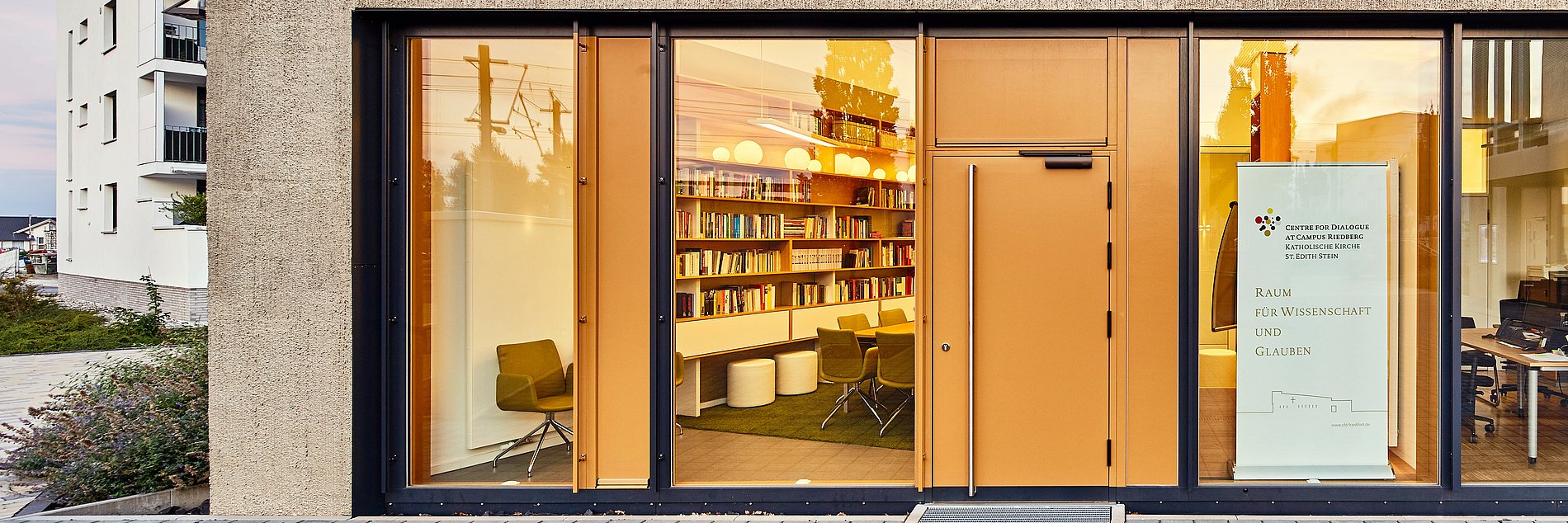 Das Centre for Dialogue am Campus Riedberg in Frankfurt dient in unmittelbarer Nähe zu den naturwissenschaftlichen Fachbereichen der Goethe-Universität dem Dialog zwischen Lebenswelt und Wissenschaft. Wir sitzen unter einem Dach mit der ­Katholischen Kirche St. Edith Stein und begreifen uns als Schnittstelle zwischen Forschung, Stadtgesellschaft und Spiritualität. Hier erfahren Sie mehr über unsere Arbeit und finden alle wichtigen Kontaktdaten. Schreiben Sie uns eine Nachricht oder rufen Sie uns an.