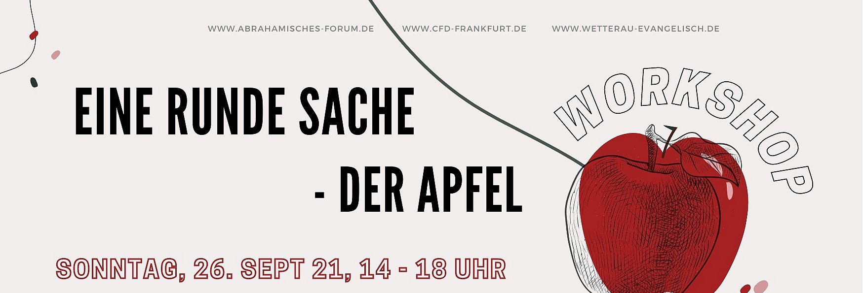 Im Rahmen der Religiösen Naturschutztage 2021 bieten das Ev. Dekanat Wetterau und das Centre for Dialogue Frankfurt-Riedberg einen Thementag rund um das Thema „Apfel“ an. Am 26. September, dem Tag der Bundestagswahl, gibt es ab 14.00 Uhr ein buntes Programm auf dem „Obsthof Am Steinberg“ in Nieder-Erlenbach. Nach einem kleinen Empfang erfahren die Gäste von Inhaber Andreas Schneider zunächst etwas über das Konzept des nachhaltig betriebenen Hofes. Es gibt Workshops für Kleine und Große: Apfelsaft zubereiten mit der Apfelpresse, eine Einführung in das jüdische Fest „Rosh Ha Shanah“, bei dem der Apfel eine wichtige Rolle spielt. Studierende der Goethe-Universität beschäftigen sich mit der Frage nach dem Zusammenhang von Naturschutz und Religion, der Interkulturelle Garten Friedberg stellt sich vor und Expert*innen erläutern die Bedeutung von regionalem und gemeinschaftlichem Anbau von Früchten. Eine religiös gestaltete Feier bildet den Abschluss um 18.00 Uhr.